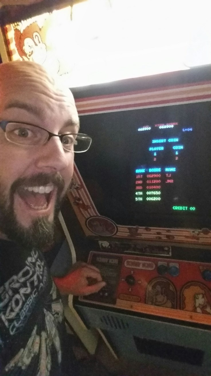 At Funspot arcade in New Hampshire, putting my initials in the Donkey Kong machine that was in the documentary King of Kong. Not a great score, but had to capture the moment