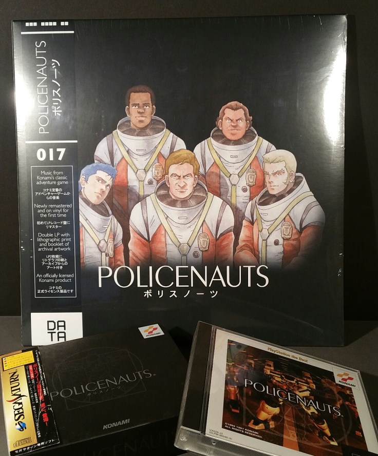 Last month’s announcement of the 17th catalog release from British video game soundtrack vinyl specialists Data Discs was an exciting surprise: Policenauts, Konami’s 1994 graphic adventure game, directed by Hideo Kojima. Available on multiple formats, beginning with the PC-9821 computer, then ported to the 3DO, Sony PlayStation, and Sega Saturn consoles, this spiritual follow-up to Kojima’s classic, Snatcher, never actually got an official release anywhere outside of Japan. Despite this, Policenauts has still managed to gain legendary status among import game enthusiasts and Kojima fans alike.