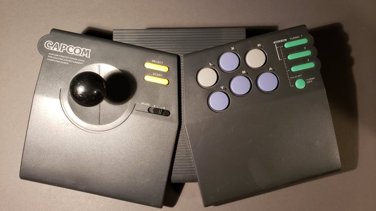 Released in the early 1990s to tie into the Street Fighter II craze, Capcom’s Fighter Power Stick is a remarkably advanced arcade stick for the Super NES/Super Famicom. It’s compatible with the NES/Famicom as well, and a version was made for the Sega Mega Drive/Genesis too.