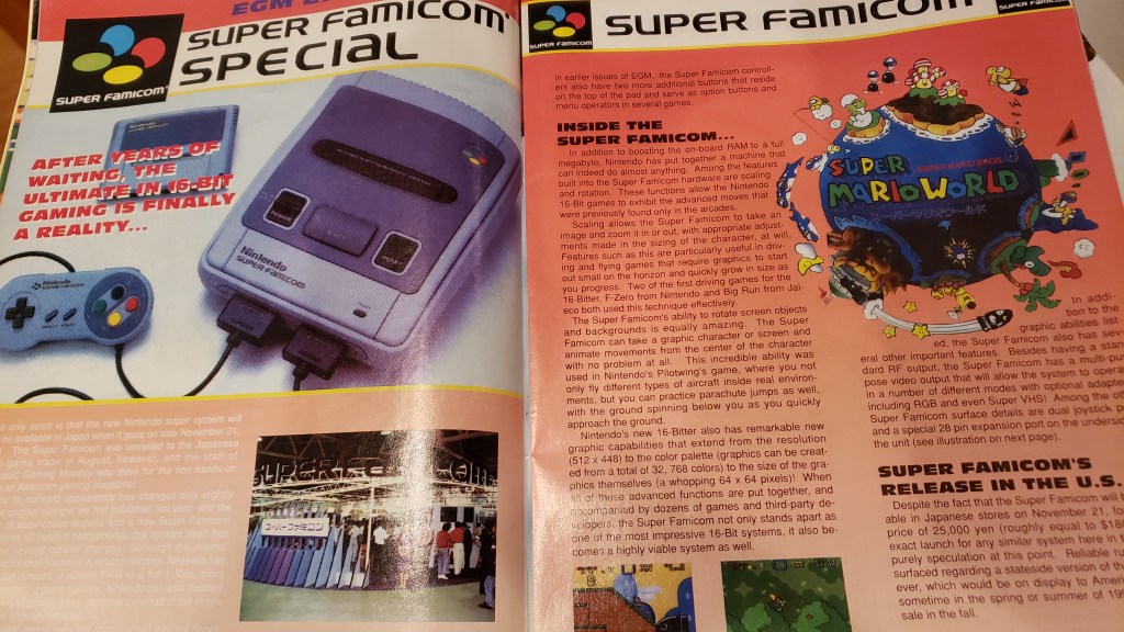The thing I really remember from the pre-launch of the SFC was the absolute fever pitch of the hype. Magazines like EGM covered the Super Famicom in every issue, dropping screenshots and vague information. And boy, did I gobble up and study every little tidbit I could find.