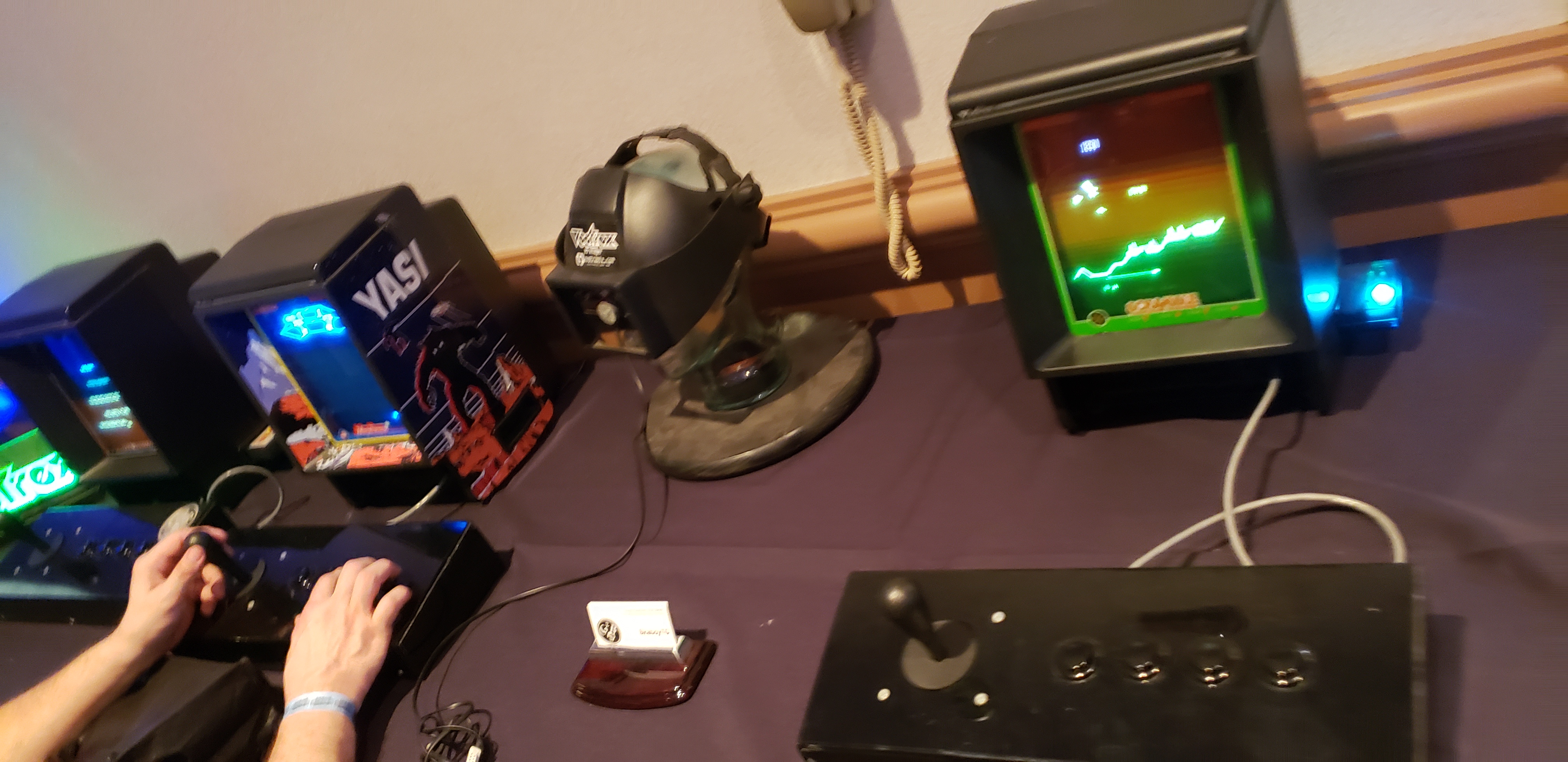 Wandering around to some of the farthest corners of the convention center, I did find a couple more special rooms. Guys Games and Beer had a room with some fun stuff in it, including a few Vectrex machines and a homemade Vectrex arcade cabinet.