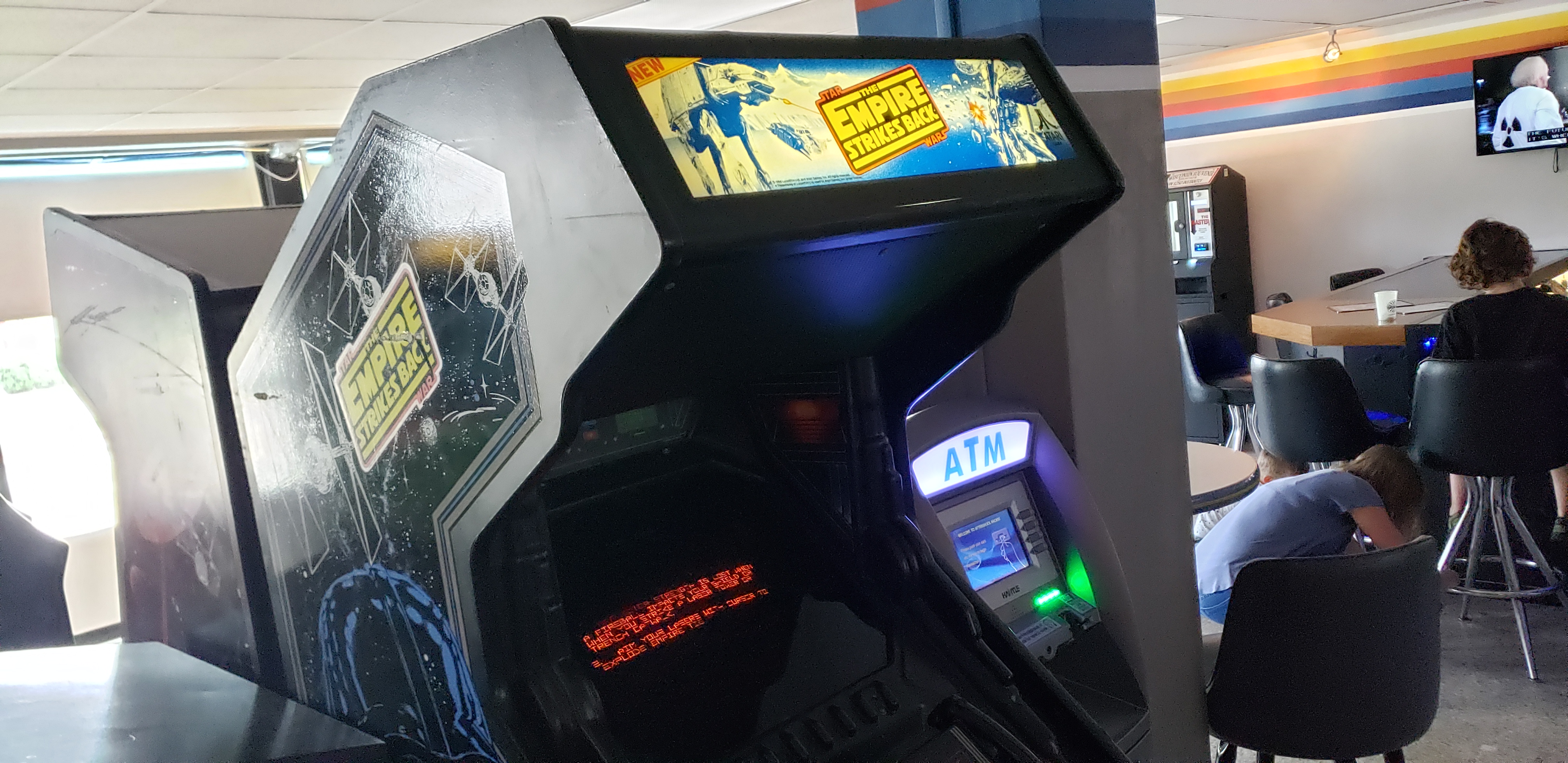 The arcade’s lineup is a great mix of well-known classics side-by-side with lesser-known titles, giving all of them equal chance to be seen and played. I spent time with favorites like Gyruss, Elevator Action, and Robotron, and also played some machines I’d never tried before, like Sky Kid and China Gate. And I know Brad has dozens more machines in storage that haven’t even hit the floor yet.