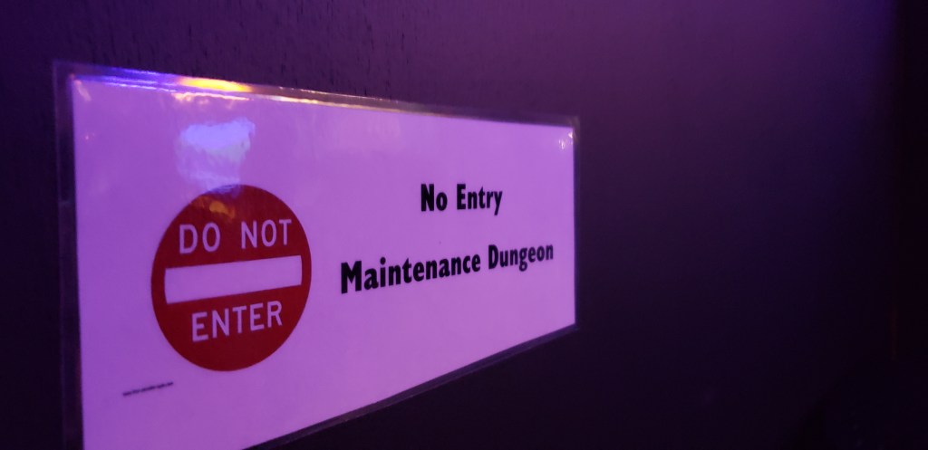 It may not be immediately noticeable, but the lighting rig on the ceiling is actually a giant Pac-Man maze! Normally lit up in blue, the colors can be changed for holidays and special occasions. This month (June), it’s displaying rainbow colors to celebrate Pride Month, because everyone is welcome here at Aftershock.
