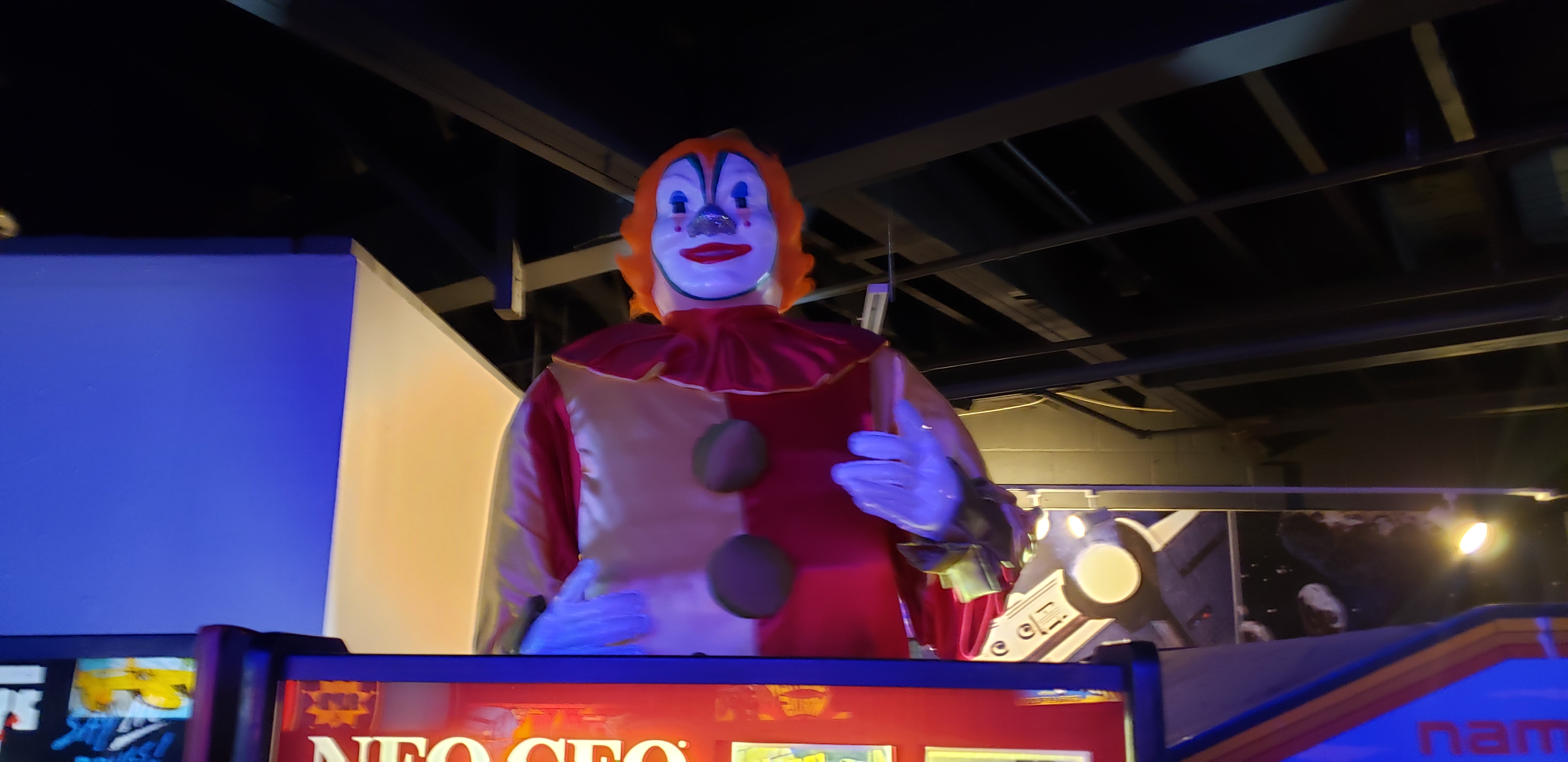 Continuing past the pinball and past a replica of the animatronic clown from Pee-Wee’s Big Adventure (no, seriously), we enter the back corner, which houses some larger cabinets, a couple more cocktail tables, a cool Asteroids mural, and of course, that ol’ Dragon’s Lair machine.