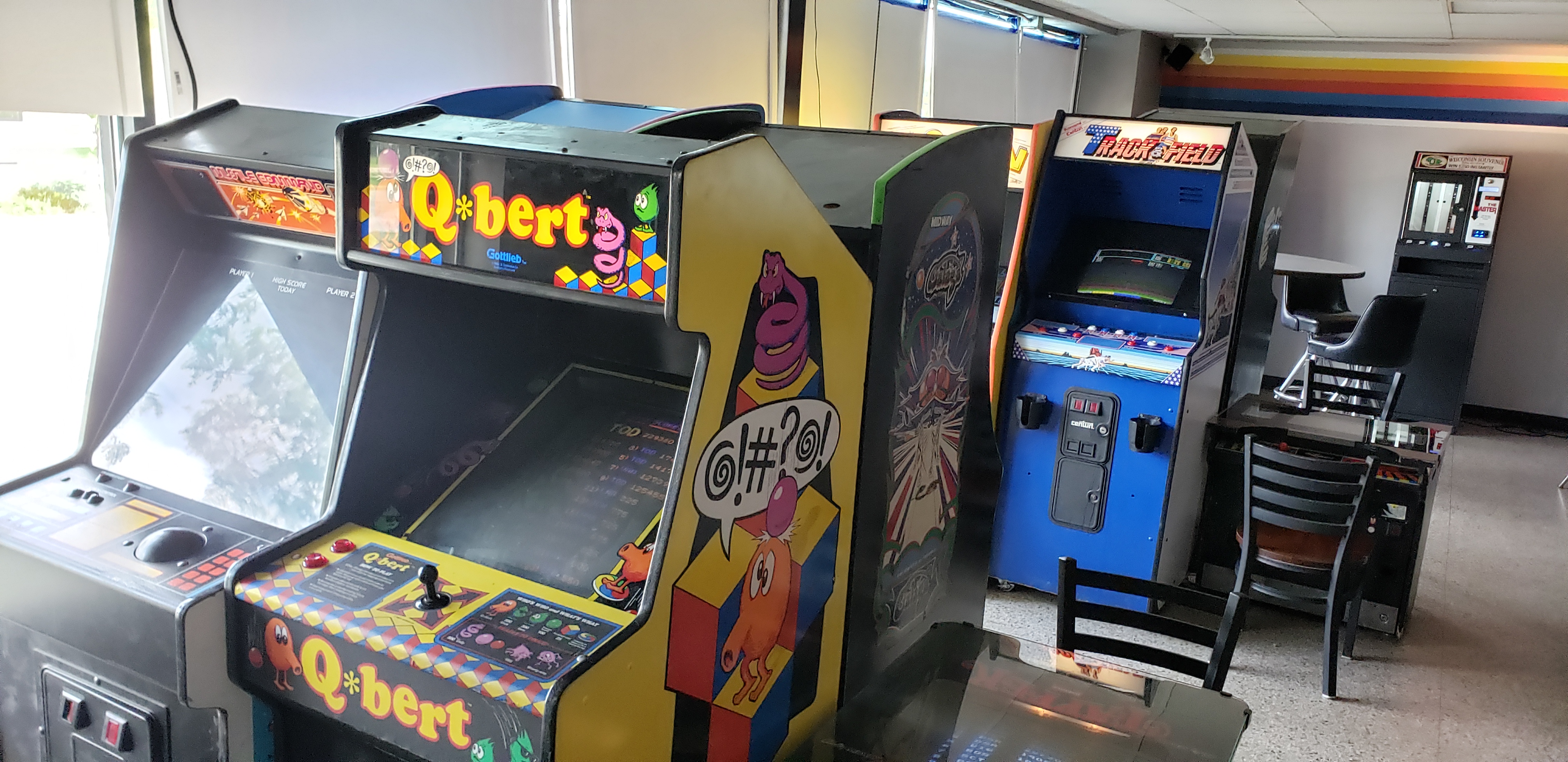 The new Aftershock Classic Arcade follows the currently-popular business model of the “barcade,” with a full bar attached to a large arcade. (Don’t worry though — Aftershock is family-friendly too.) The entrance leads directly into the front room, where not only the bar is located, but also some of the arcade’s rarest and most popular games. It’s here where you’ll find not only good ol’ Pac-Man, Galaga, and Defender, but also some of the crown jewels of Brad’s collection: Chiller, Death Race, Discs of Tron, Star Trek SOS, and an astounding DECO BurgerTime.