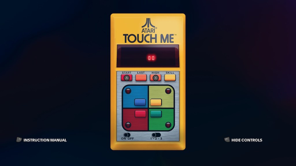 Also under the Reimagined header is a recreation of the early Atari handheld game Touch Me, which is basically Simon, but there’s something hilariously awesome about playing this on a modern console.