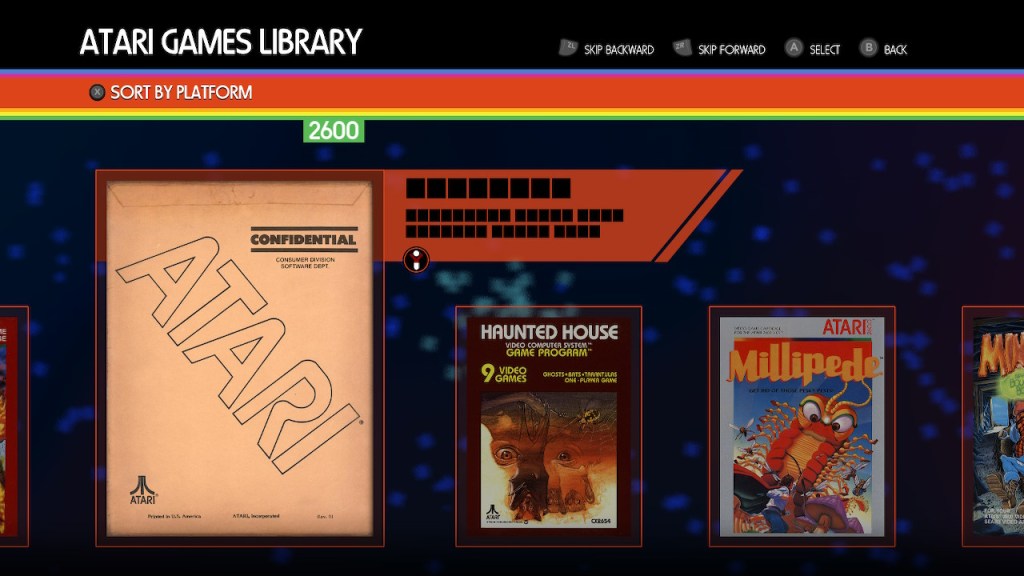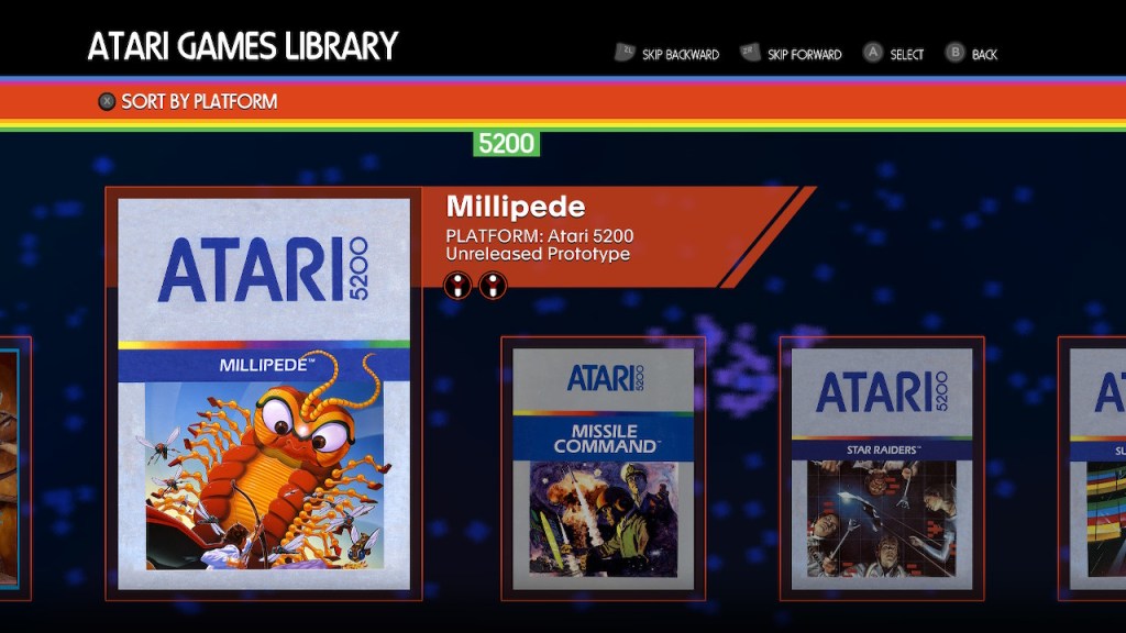 The rest of the consoles are not individually represented quite as robustly as the arcade and 2600 eras, but taken altogether they represent another hefty cross-section of Atari’s output and there’s just a ton to explore and play here. The 5200 games include your basics like Super Breakout and Star Raiders, but most interestingly, an unreleased prototype of Millipede which is quite good.