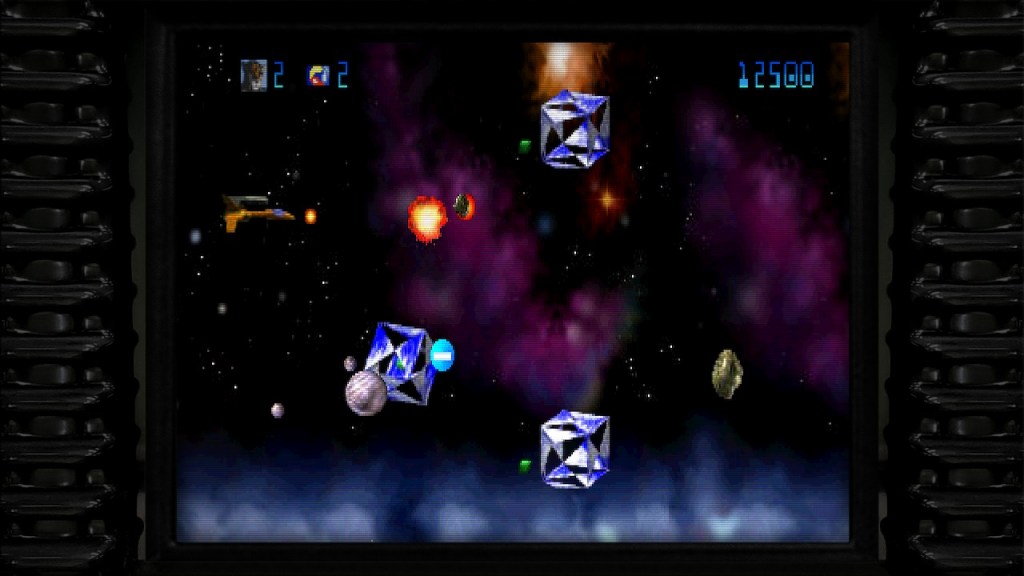 This is as good a spot as any to mention that all of the games on the collection have display options which allow you to choose a clean display or “TV” filtered with scanlines and some vignette edging, arcade bezels and home box art, and various screen sizes. You can even adjust the amount of “glow” on the arcade vector games. The only thing missing is a filter that makes it look like it’s connected to a TV via RF switcher box on channel 3 that goes fuzzy when someone uses the vacuum cleaner.