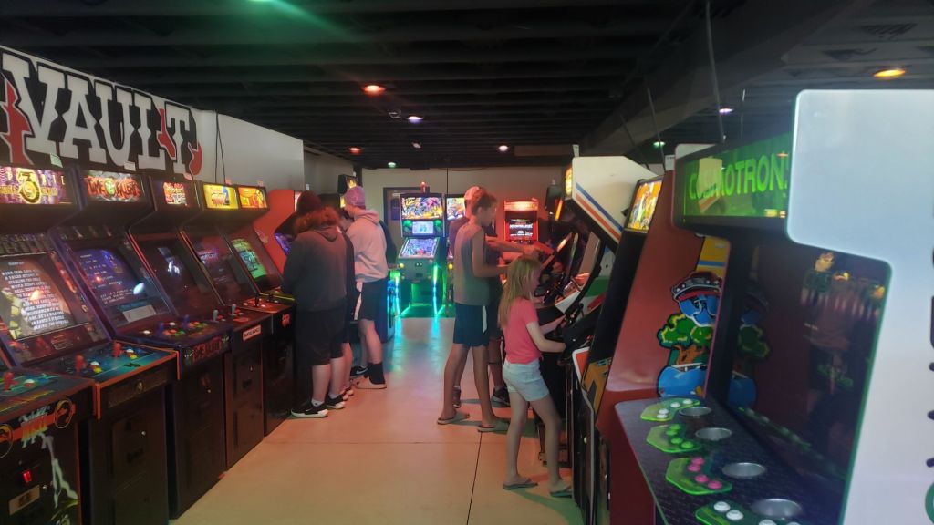 Admission is $20 for all-day access, and they’re currently open Friday through Sunday, 12 noon til 10pm. (They do have expanded weekday hours during summer.) Upon entry, you’ll pay at a small table, and all games are on free play or have credit buttons.